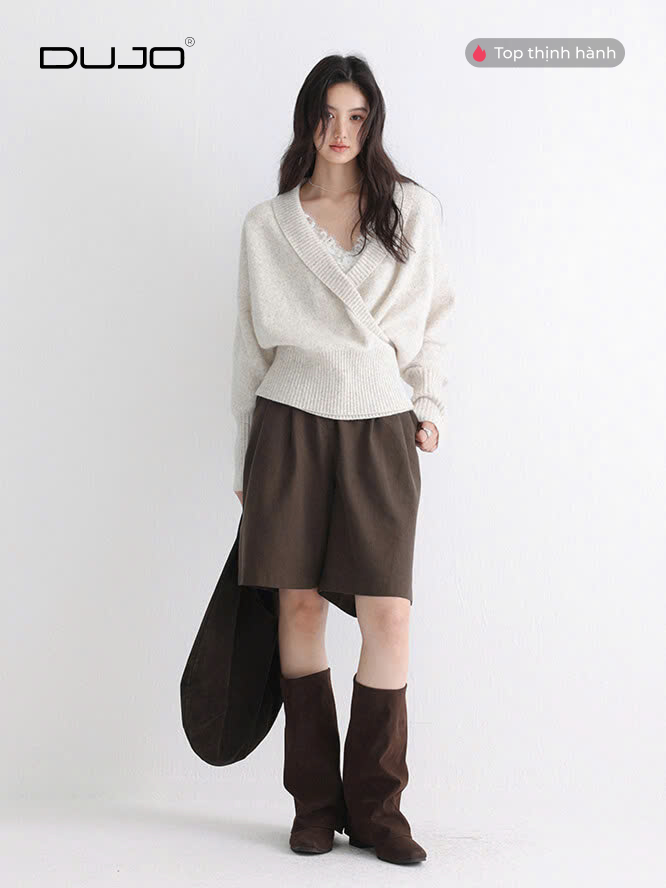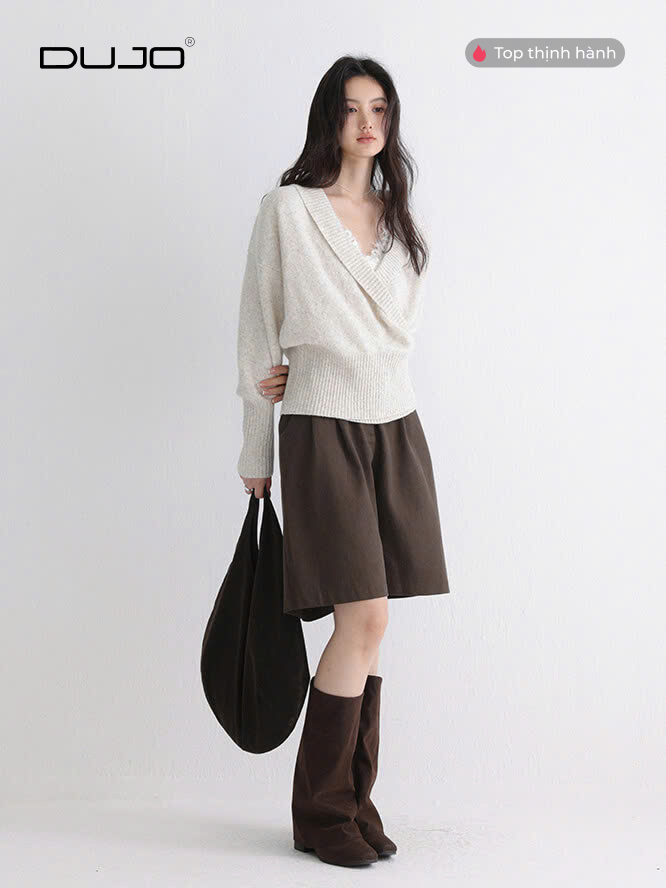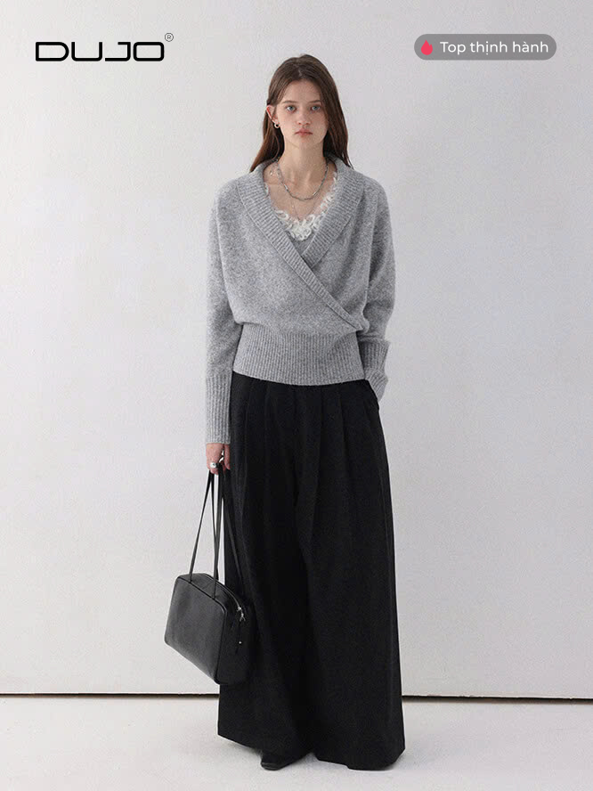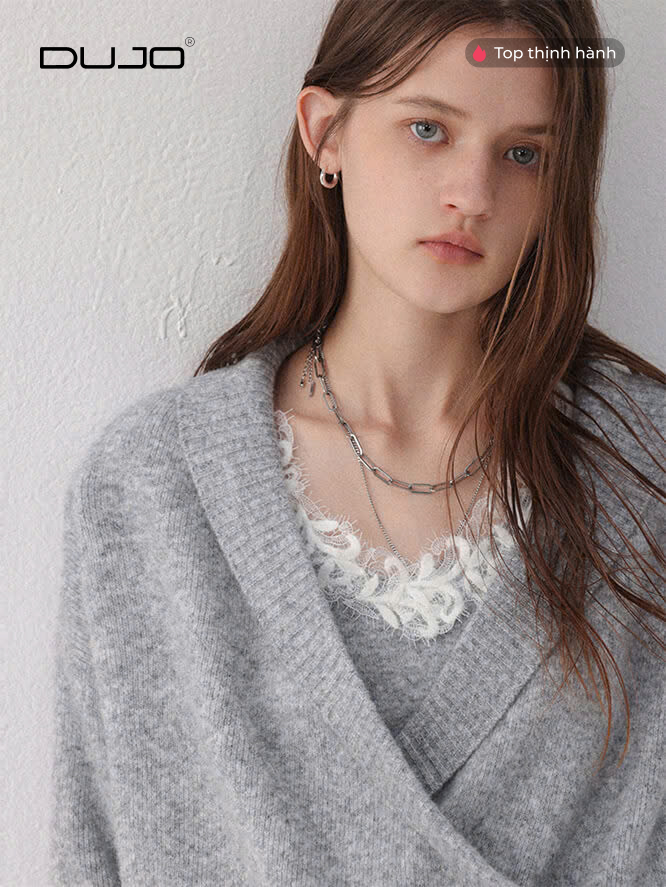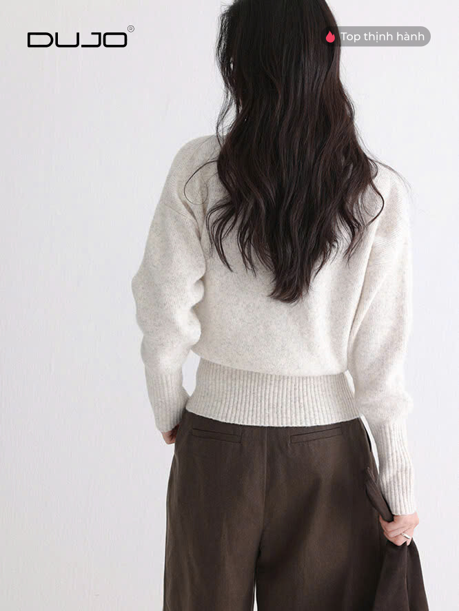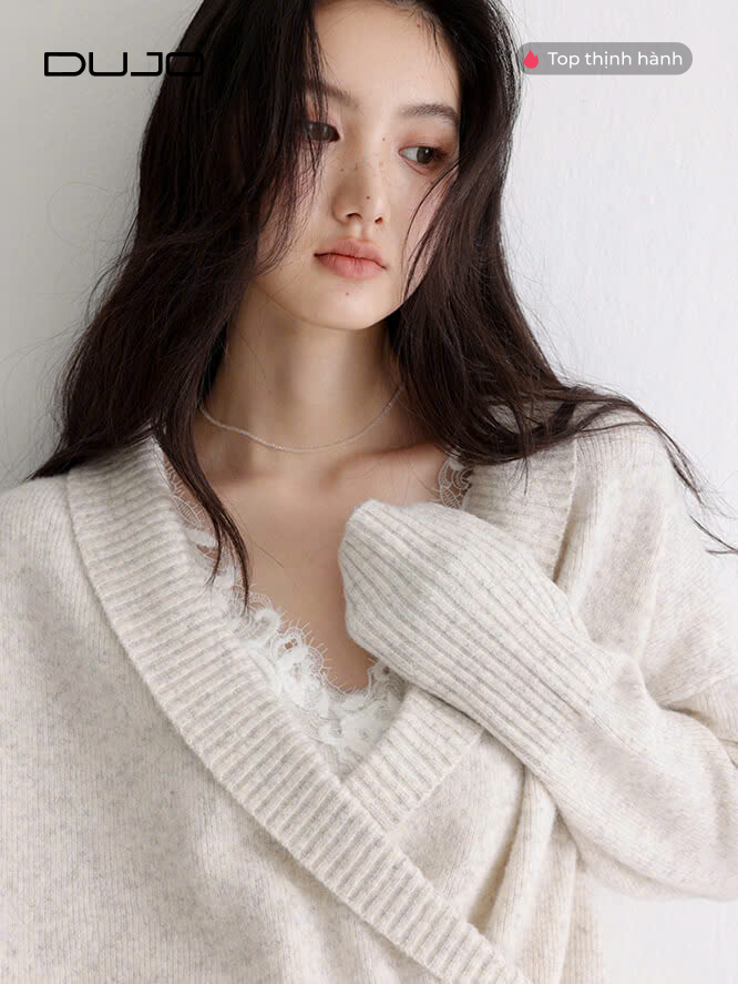 Áo Len Cổ V Dáng Suông – Mềm Mại, Tôn Dáng, Mặc Là Mê