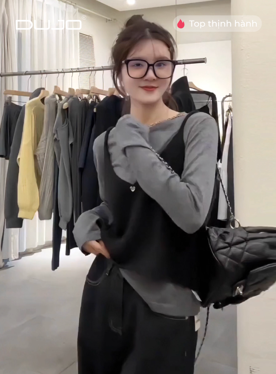 Áo Thun Nữ Big Size – Dáng Rộng 2 Lớp, Tay Dài, Phong Cách Hàn Quốc 2025