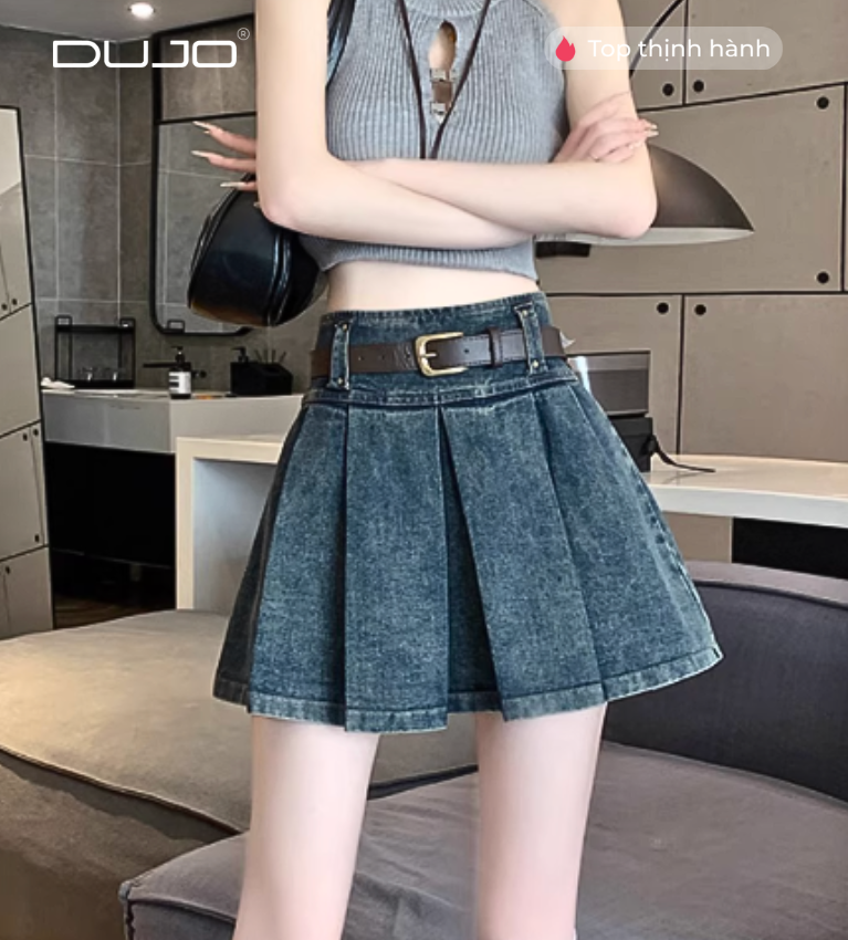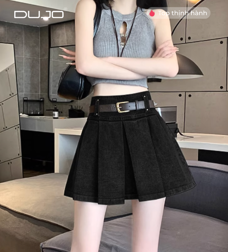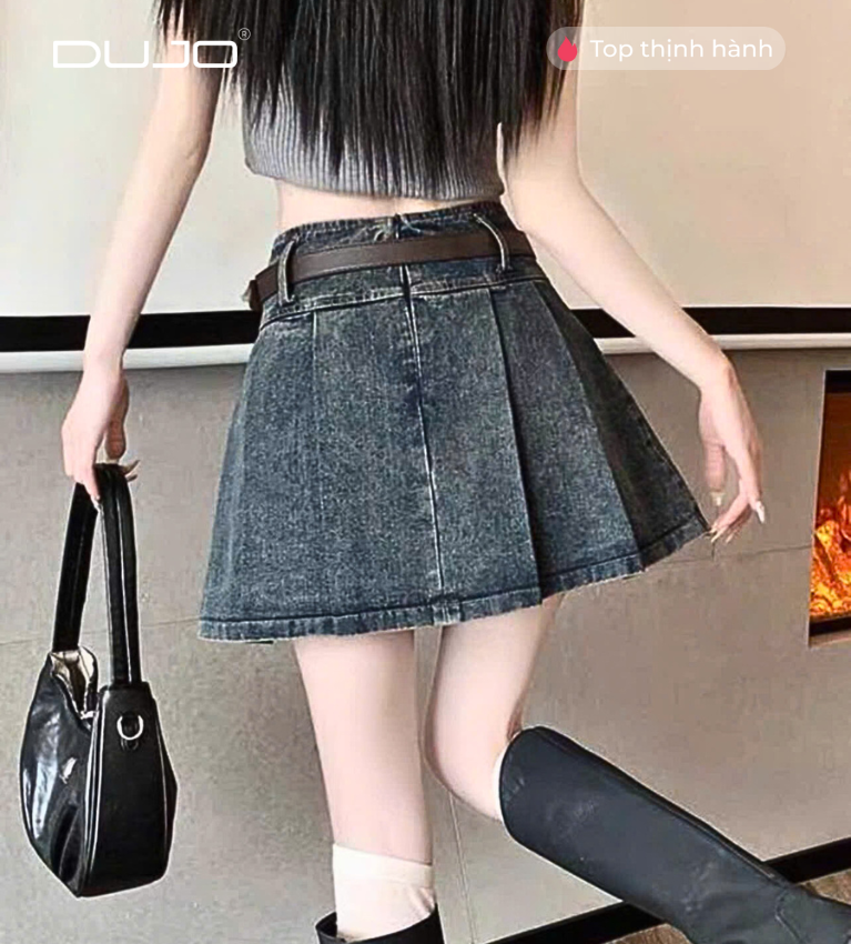 Chân Váy Denim Xếp Ly Vintage – Tôn Dáng & Dễ Phối